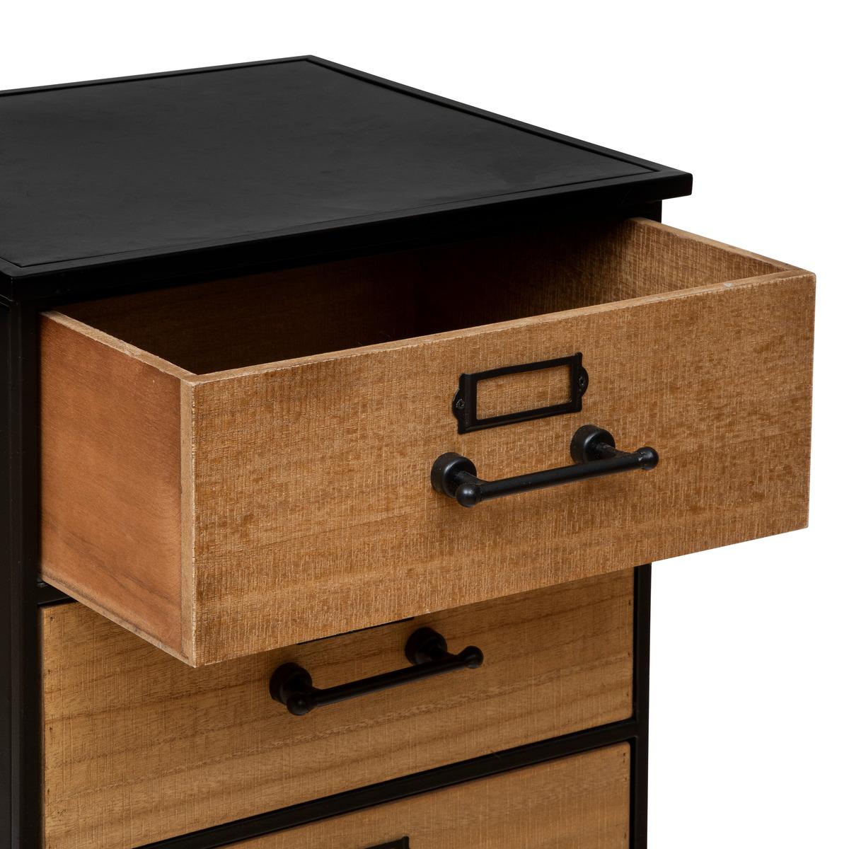 Comoda Baris compactă și elegantă, combinând o structură metalică robustă cu elemente din MDF. Datorită designului modern și stabilității sale, este potrivită atât pentru dormitor sau hol, cât și pentru spațiile de birouri.