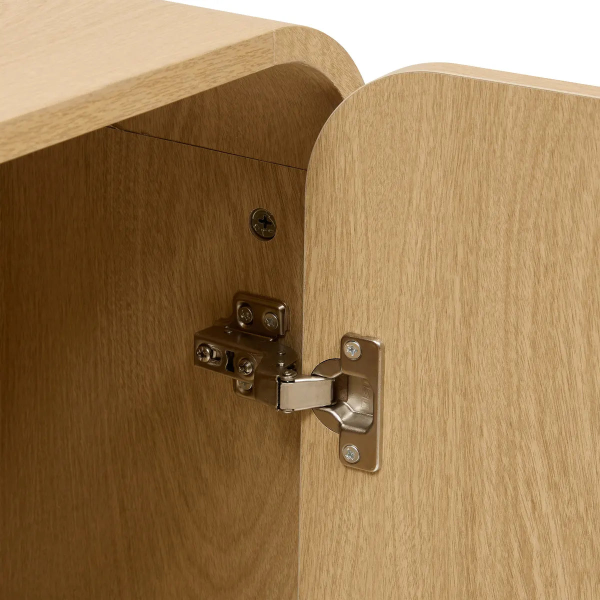 Comodă elegantă și funcțională, realizată din MDF cu finisaj cu efect de mesteacăn. Cu o suprafață mată și texturată, oferă un aspect natural și modern interiorului. Are 2 uși și 4 compartimente interne, oferind spațiu practic de depozitare.