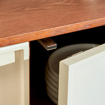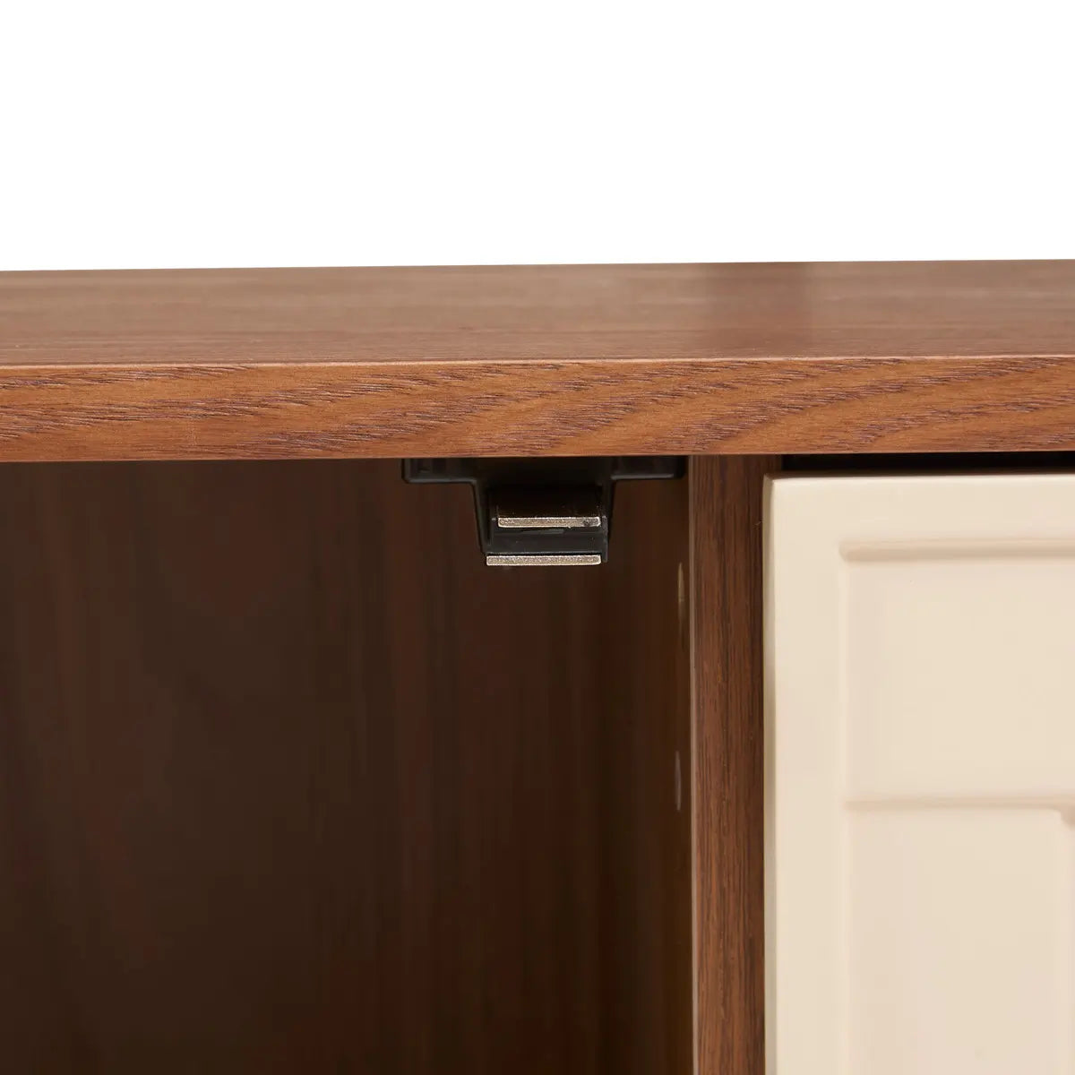 Comoda are 3 uși și un total de 6 compartimente cu rafturi fixe, oferind mult spațiu de depozitare. Este echipată cu balamale cu închidere silențioasă și tampoane de protecție pentru stabilitate și protecție a podelei.