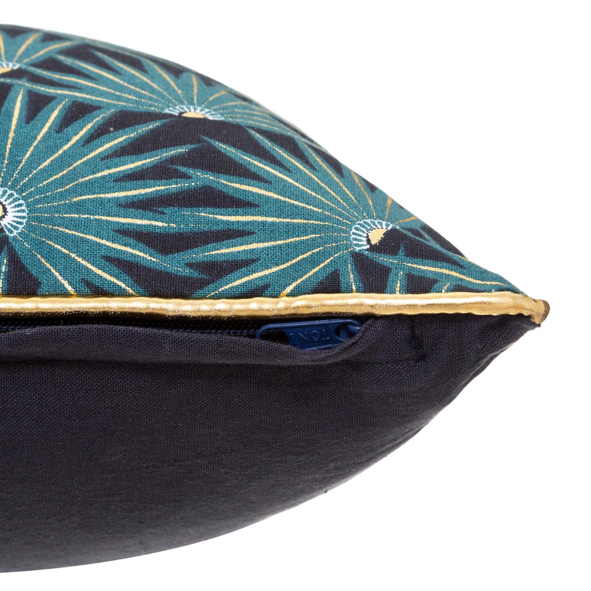 O pernă decorativă cu un design elegant, care combină moliciunea și durabilitatea. Marginile aurii și ornamentele fine adaugă strălucire ce accentuează senzația de stil și confort. Fermoarul practic facilitează îndepărtarea husei. Este potrivită pentru o canapea, fotoliu sau dormitor, unde aduce un accent sofisticat.