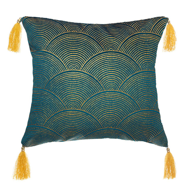 O pernă decorativă cu imprimeu strălucitor care aduce eleganță și o atmosferă jucăușă interiorului. Ciucurii adaugă un detaliu elegant, iar fermoarul practic facilitează îndepărtarea și întreținerea husei. Potrivită pentru o canapea, fotoliu sau dormitor, este un accent perfect pentru un mediu modern și confortabil.