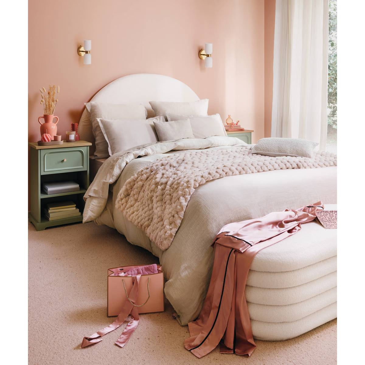 Покривалото Adriel се комбинира прекрасно с кадифени възглавници Atmosphera, които подчертават неговия топъл и изискан вид.