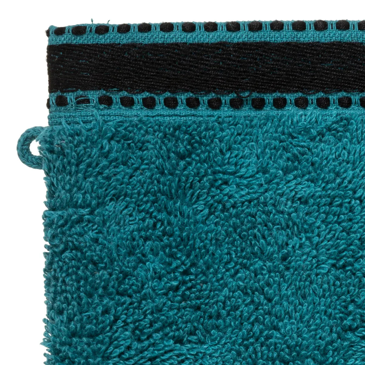 Bordura contrastantă elegantă adaugă un accent estetic subtil, iar certificarea OEKO-TEX garantează că materialul este sigur și lipsit de substanțe nocive. Mănușile sunt compacte și practice pentru baie, tratamente spa sau călătorii.