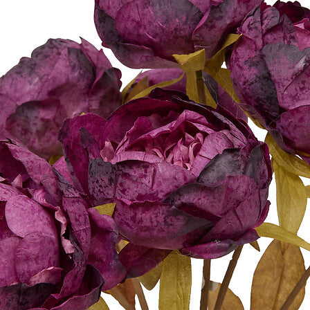 Buchet de bujori artificiali cu o înălțime de 53 cm și dimensiuni de 40 x 25 cm, realizat din poliester. Cu un design realist și culori bogate, este o soluție elegantă pentru o vază sau o decorațiune florală acasă.