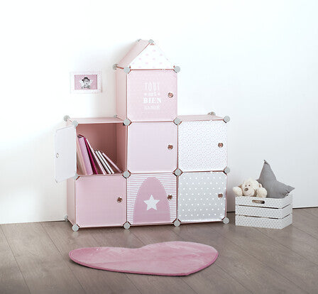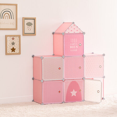 Dulap de depozitare pentru copii Atmosphera, roz, 7 compartimente, 110 cm