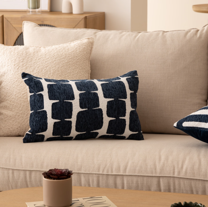 Față de pernă dreptunghiulară din bumbac moale, cu imprimeu. Oferă confort și stil în interior, potrivită pentru o canapea, fotoliu sau dormitor.