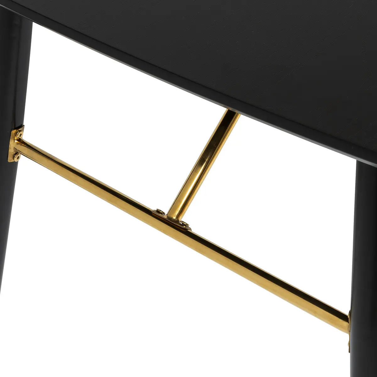 Această masă de sufragerie „Noir” combină eleganța și stilul contemporan. Fabricată din MDF negru cu cadru metalic, este ideală pentru crearea unui interior modern care impresionează prin linii curate și un aspect elegant.