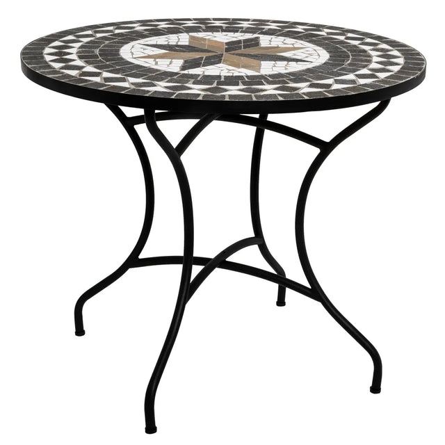 Cu blatul său din mozaic, masa rotundă Kipos aduce un frumos spirit roman în spațiul tău. Picioarele elegante cu linii curbate completează perfect mozaicul de pietre în diferite culori.