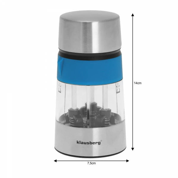Râșniță de sare și piper 3 în 1, condimente Klausberg KB-7020, 3 compartimente, oțel inoxidabil