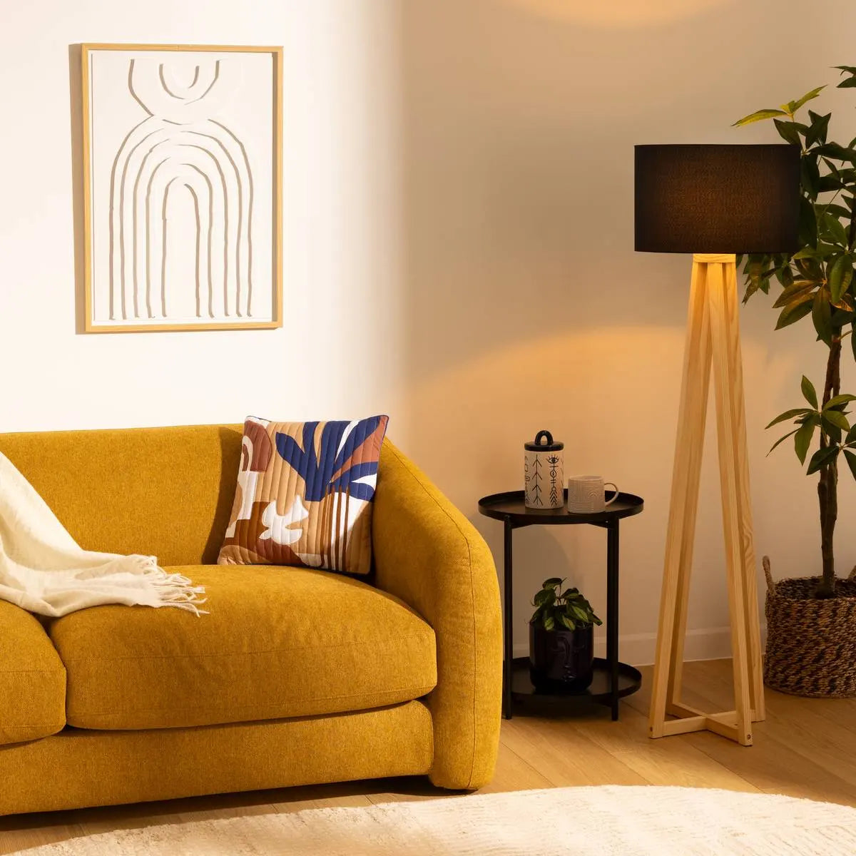 O lampă de podea contemporană cu o bază din lemn natural, care creează o atmosferă caldă și confortabilă în orice interior. Această lampă de podea combină un design curat și o textură naturală, fiind potrivită pentru living, dormitor, hol sau birou - un accent ideal pentru interioarele moderne și scandinave.