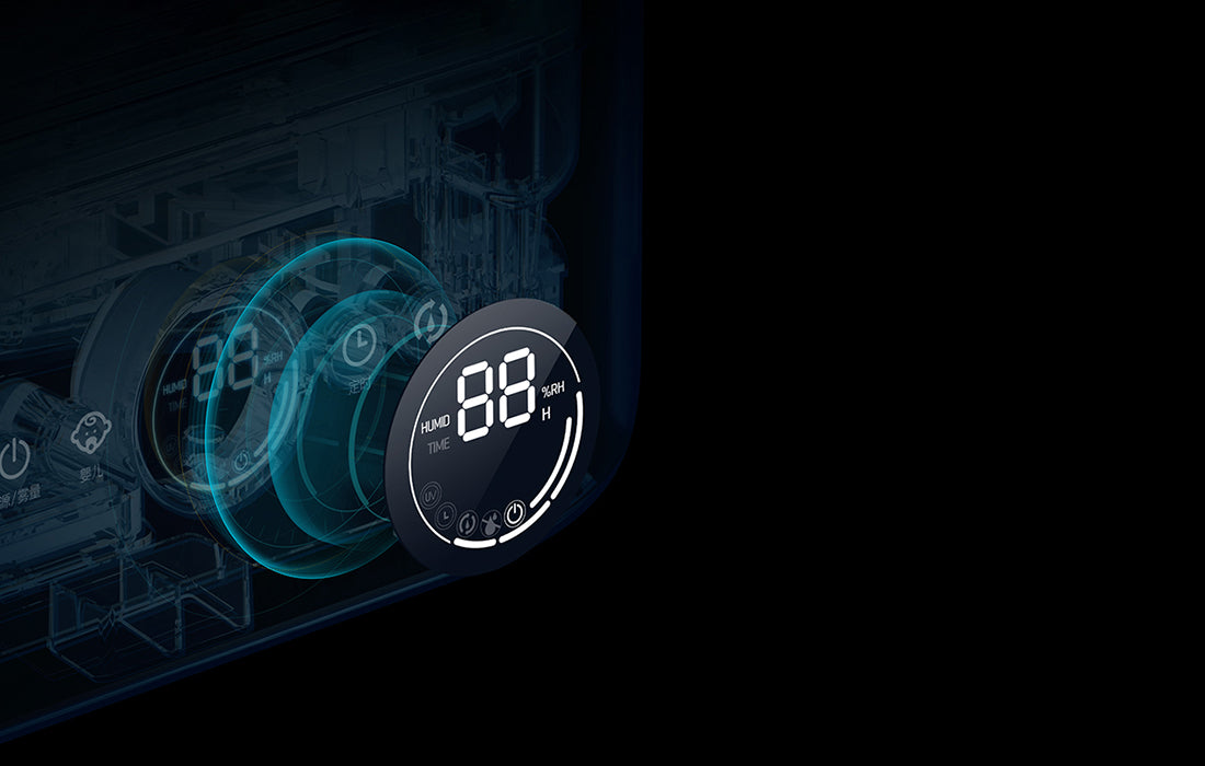 - Afișaj digital: Afișajul digital convenabil cu patru butoane permite controlul facil al funcțiilor dispozitivului, inclusiv setarea nivelului de umiditate, a cronometrului și activarea modului de aromaterapie.