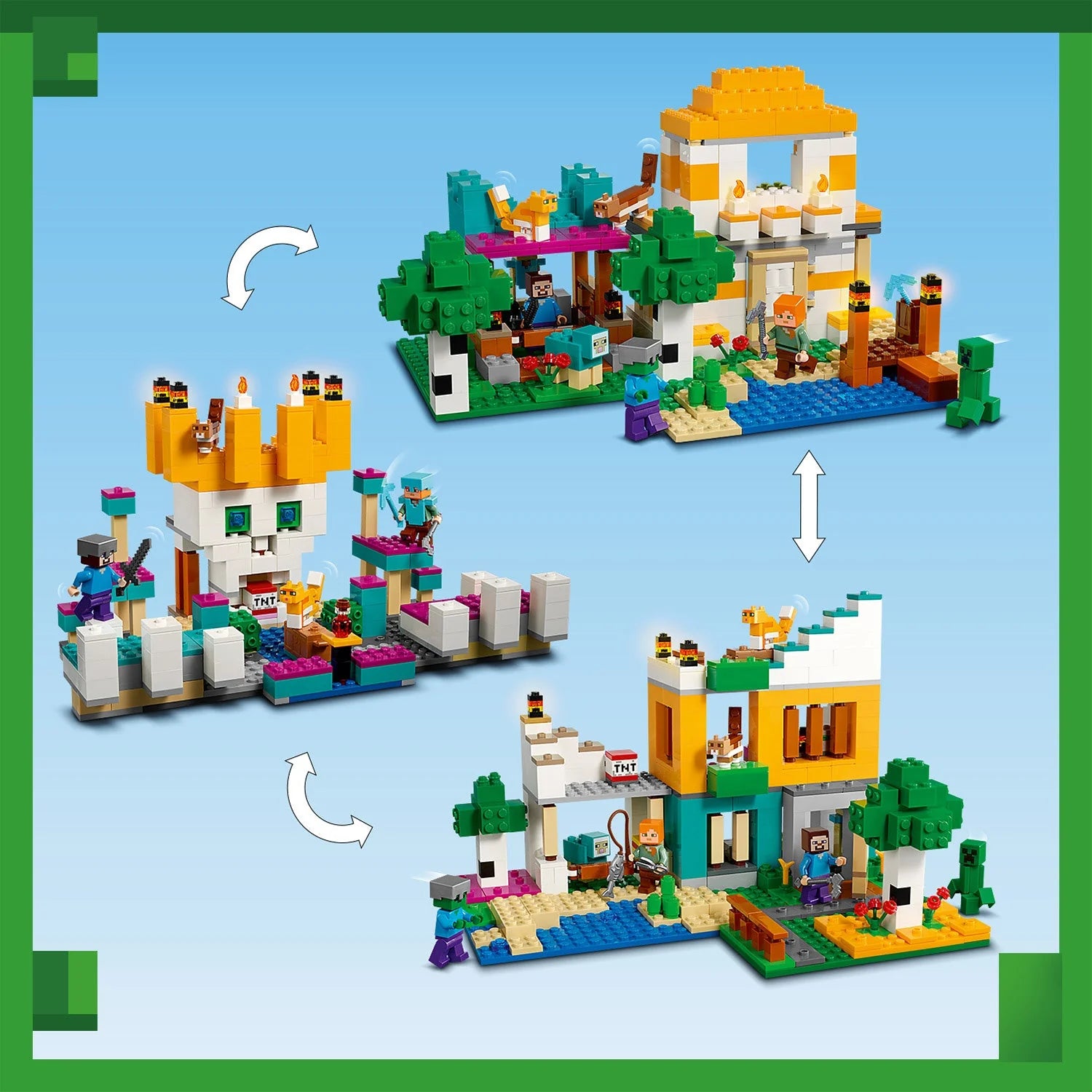 • Setul LEGO® Minecraft™ este construit pentru a rezista, poate fi reconfigurat la infinit și ușor de combinat cu alte seturi LEGO Minecraft.