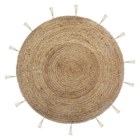 Covorul rotund impresionează printr-o combinație de iută naturală și fire fine de lurex, care îi conferă o ușoară strălucire și un caracter unic. Pompoanele decorative de pe margine adaugă un accent jucăuș și confortabil, fiind potrivit în special pentru un dormitor sau o cameră pentru copii. Compact și elegant, va aduce căldură și farmec oricărui interior.