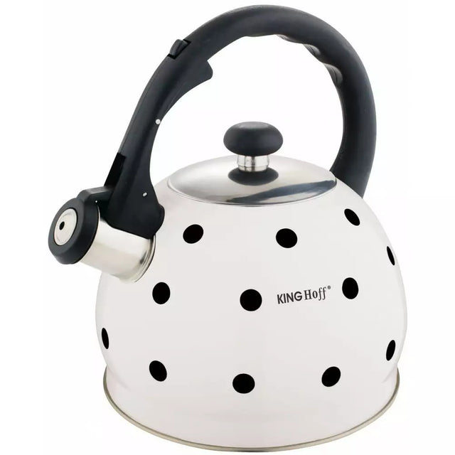 Fierbător cu fluierat KingHoff 1050, 2L, Mâner termoizolant, Inducție, Oțel inoxidabil, Alb/negru