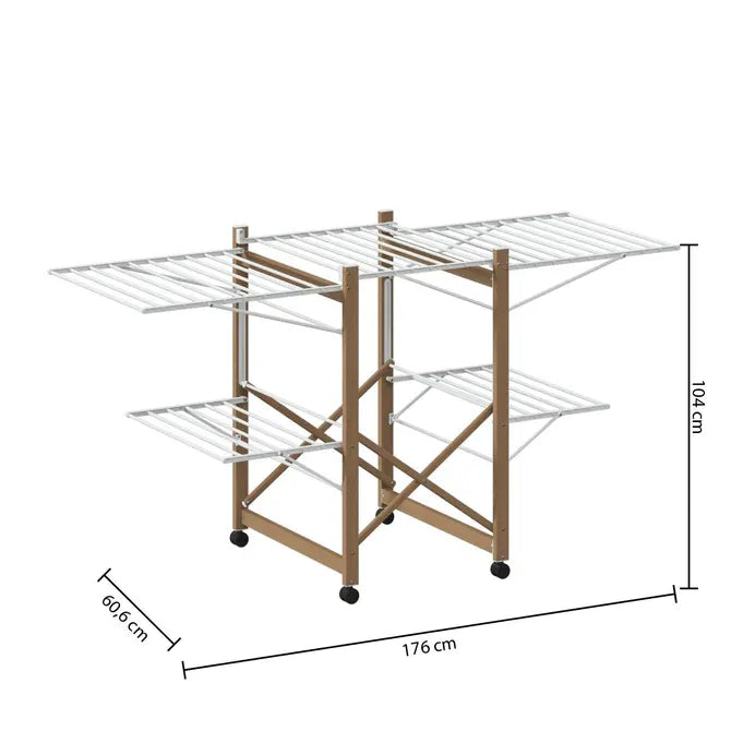 Uscător de rufe 5five cu efect de lemn și 4 roți, efect metalic de lemn, 27 m