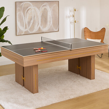 Masă multifuncțională cu dimensiunile de 215,3 x 121,8 x 82,2 cm, fabricată din MDF. Datorită panoului detașabil, poate fi utilizată în trei moduri - ca masă de sufragerie, masă de biliard sau masă de tenis de masă. O soluție practică care combină funcționalitatea, distracția și stilul într-un singur produs, potrivită pentru reuniuni de familie și cine între prieteni.