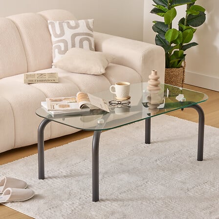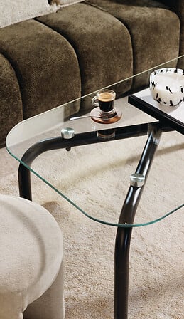 Design curat și construcție robustă — o măsuță de cafea elegantă care combină o structură metalică și un blat din sticlă securizată. Designul contemporan adaugă stil și luminozitate vizuală oricărui living, oferind un echilibru între minimalism și funcționalitate.