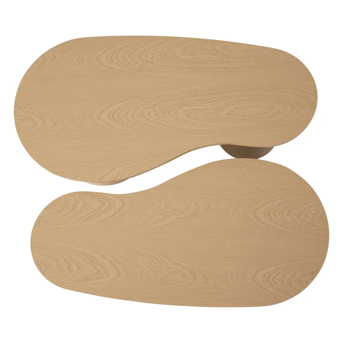 Un set de mese de design cu forme organice Yin & Yang . Realizate din furnir de hârtie cu efect de mesteacăn și o bază cu finisaj canelat și neted. Datorită formei gigogne, acestea pot fi stivuite și ușor suprapuse - o soluție elegantă și practică pentru interioarele moderne.