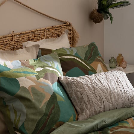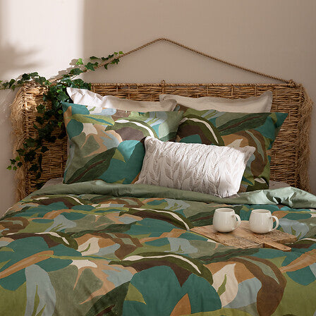Комплектът е двулицев с напълно реверсивен дизайн, което ви позволява лесно да сменяте визията на спалнята според настроението си. Практичен и функционален, той включва плик за завивка и удобни квадратни калъфки за възглавници, създавайки завършен и хармоничен вид на леглото.