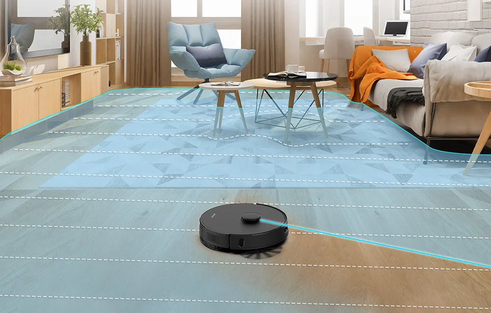 AIRROBO T20+ folosește cea mai recentă tehnologie pentru a asigura o eficiență maximă de curățare. Motorul fără perii Nidec oferă o putere de aspirare de până la 2600 Pa. Rezultatul este îndepărtarea eficientă a murdăriei și prafului de pe diverse suprafețe. Navigarea inteligentă și planificarea rutei de curățare sunt posibile datorită sistemului laser avansat, care oferă o precizie extremă și ajunge eficient în toate colțurile și locurile.