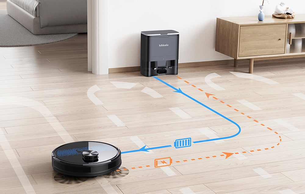 Autonomie lungă de funcționare și încărcare automată Cu o baterie puternică de 2600 mAh, robotul funcționează până la 120 de minute. Când bateria scade la 15%, SL60 Plus revine automat la stație, se reîncarcă și continuă de unde a rămas.