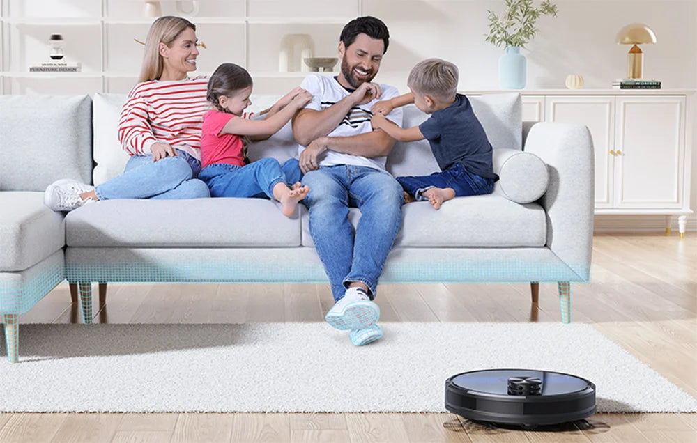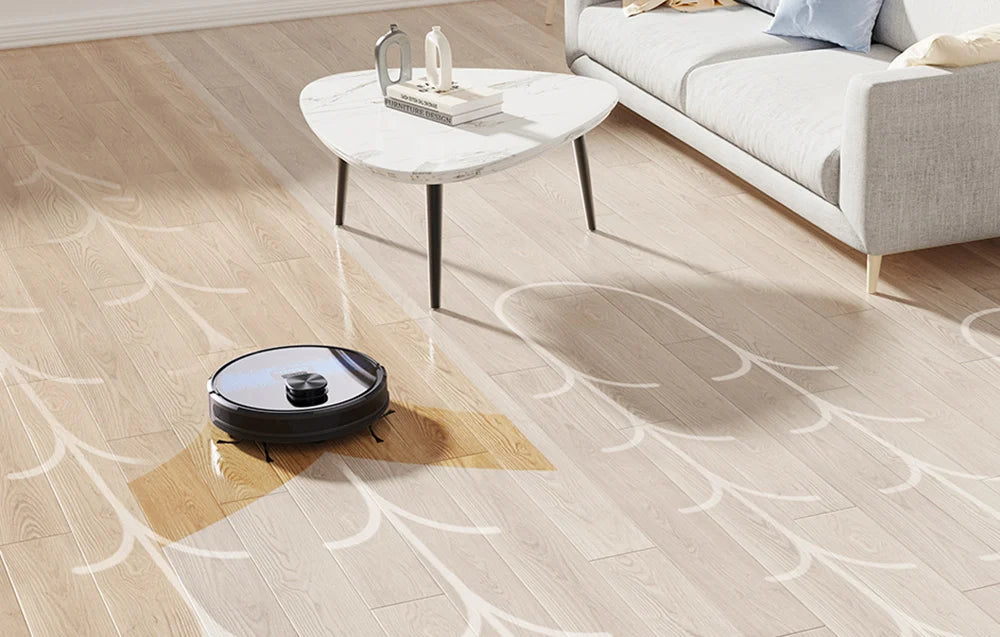 Podele curate și strălucitoare. Robotul SL60 Plus nu doar aspiră, ci și șterge cu mopul. Cu 3 niveluri de debit de apă și o pompă electronică care previne scurgerile, robotul îndepărtează cu ușurință petele încăpățânate, urmele de noroi și băuturi, oferindu-vă podele strălucitoare.