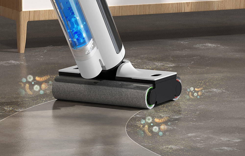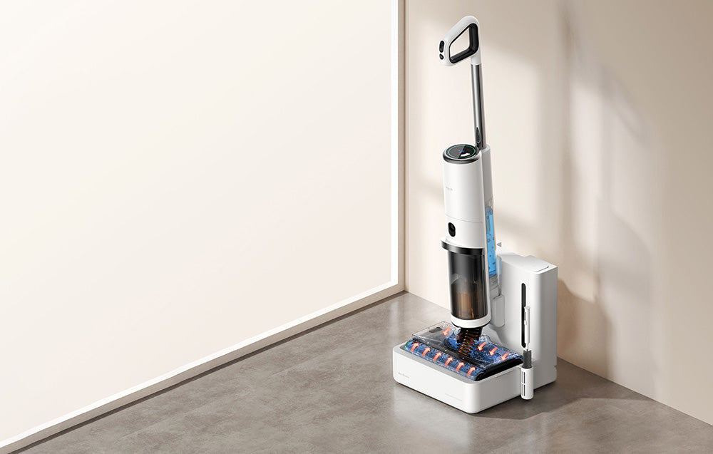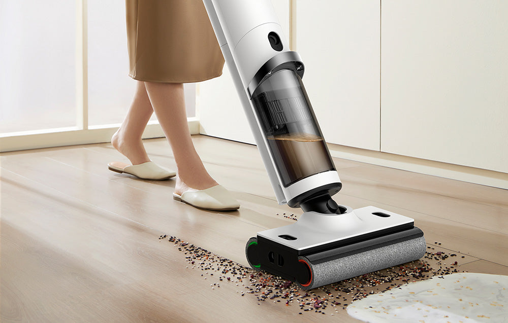 Aspiratorul fără fir Deerma DEM-VX910W vă permite să curățați și să ștergeți podelele în același timp, datorită prezenței a două rezervoare (pentru apă curată și murdară) și a unei puteri de aspirare de până la 16.000 Pa. Dispozitivul include o stație specială care curăță automat peria mașinii și umple rezervorul acesteia cu apă. În plus, aspiratorul are un afișaj LED încorporat și senzor de praf, precum și un timp de lucru de până la 45 de minute. Sunt disponibile și comenzi vocale. Peria aspiratorului este echipată cu două role pentru o curățare mai eficientă.
