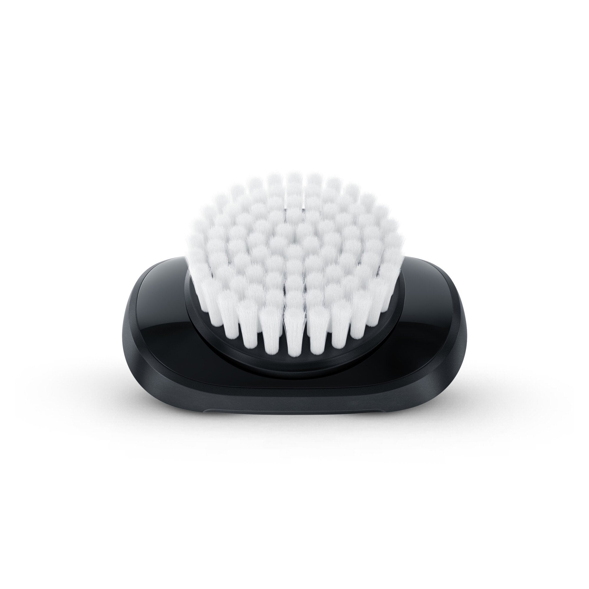 Curăță pielea semnificativ mai bine decât manual. În doar un minut, peria de curățare Braun îndepărtează murdăria și pielea moartă.