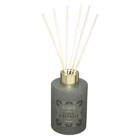 Дифузер с аромат Lola, стъклено шише, метален хромиран капачка и дървени пръчици за равномерна и продължителна ароматизация. Вместимост 100 мл, осигуряваща няколко седмици аромат.