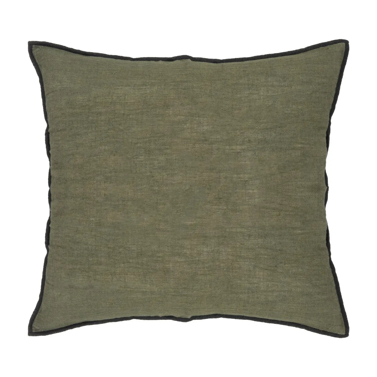 Compoziție: in, bumbac și poliester. Umplutură: 100% poliester. Decorațiune: bordură pe toate cele patru laturi, fermoar 3/4 pe spate. Imprimeu: vopsire reactivă.