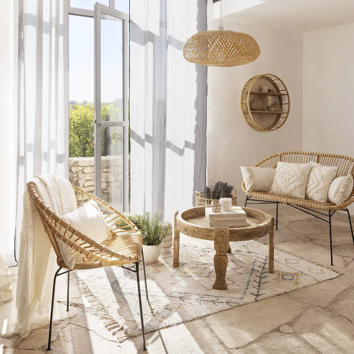Canapeaua Keko tapițată cu fibre naturale de ratan este combinația perfectă între natură și stil. Acest accent elegant adaugă căldură și confort interiorului tău. Fabricată din ratan de înaltă calitate și cu o structură metalică robustă, nu numai că oferă estetică, ci și durabilitate de lungă durată.