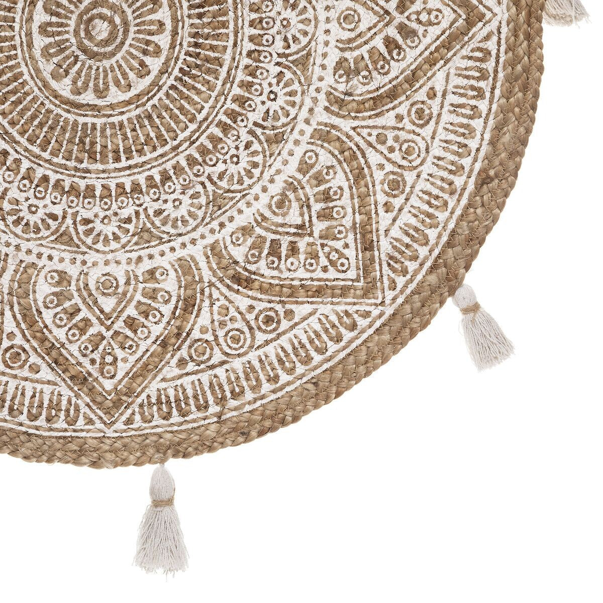 Covorul rotund din iută combină un aspect natural cu un accent decorativ alb. Pompoanele jucăușe de pe margine adaugă farmec și confort, în timp ce textura naturală adaugă căldură interiorului. Dimensiunea compactă îl face potrivit pentru un dormitor, o cameră pentru copii sau o zonă de relaxare, unde va aduce prospețime și armonie.