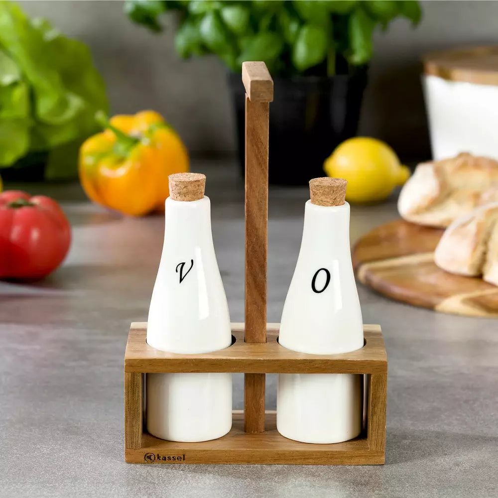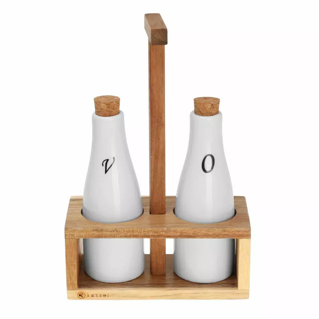 Set de ulei de măsline Kassel 93576, Acacia, Porțelan, 3 piese
