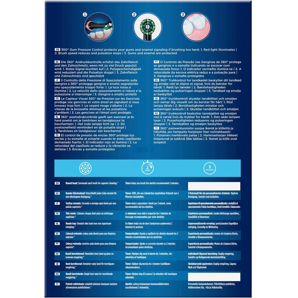 • Cronometru profesional : cronometru de 2 minute cu alerte la fiecare 30 de secunde pentru curățarea uniformă a tuturor zonelor gurii.