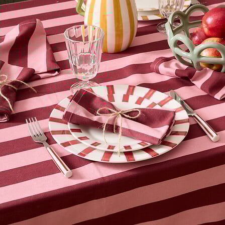 Un set elegant de 4 șervețele textile, fabricate din bumbac 100%. Cu dimensiunile de 40 x 40 cm, sunt moi, rezistente și într-o elegantă culoare roșu carmin - un plus perfect pentru orice masă.