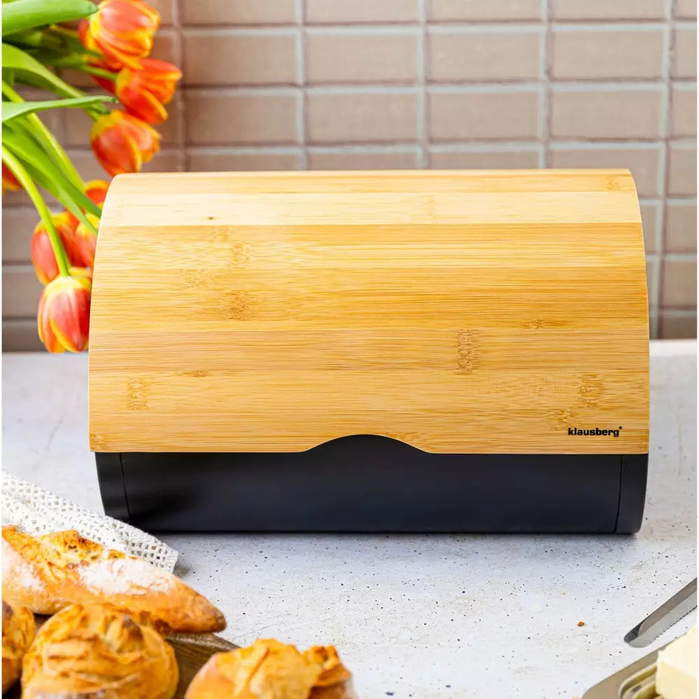 Cutie pentru pâine Klausberg 7711, 32 cm, Construcție ușoară și robustă, Bambus, Maro/negru