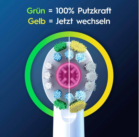 • Indicator de înlocuire: Perii se îngălbenesc atunci când este timpul să înlocuiți capul periei pentru a menține o curățare optimă.