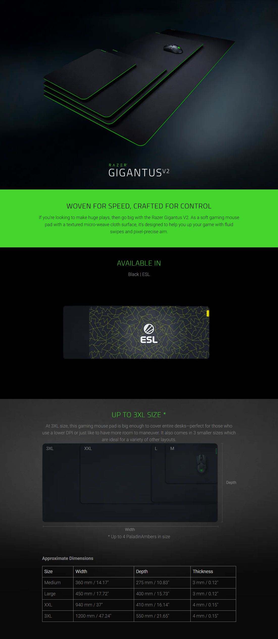 Dacă ai un mouse de excepție, alege mousepad-ul potrivit pentru a crea o combinație letală. Razer Gigantus V2, de dimensiuni mari, cu suprafața sa texturată micro-țesută, îți permite să joci la un nivel înalt, cu mișcări fluide și o țintire precisă la pixeli, în timp ce suprafața moale a pad-ului îți protejează încheietura mâinii în timp ce te confrunți cu concurența.