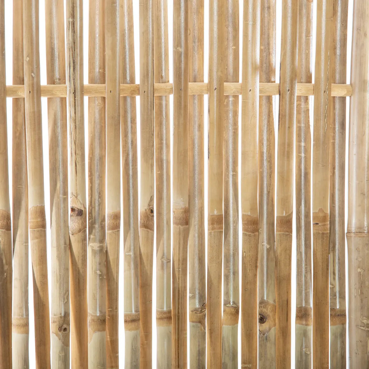 Acest paravan este fabricat din bambus natural - un material care combină rezistența, durabilitatea și estetica exotică. Datorită dimensiunilor sale practice și designului pliabil, este ușor de mutat și depozitat. Este potrivit atât pentru compartimentarea camerelor, cât și ca accent decorativ care aduce căldură naturală și armonie interiorului.