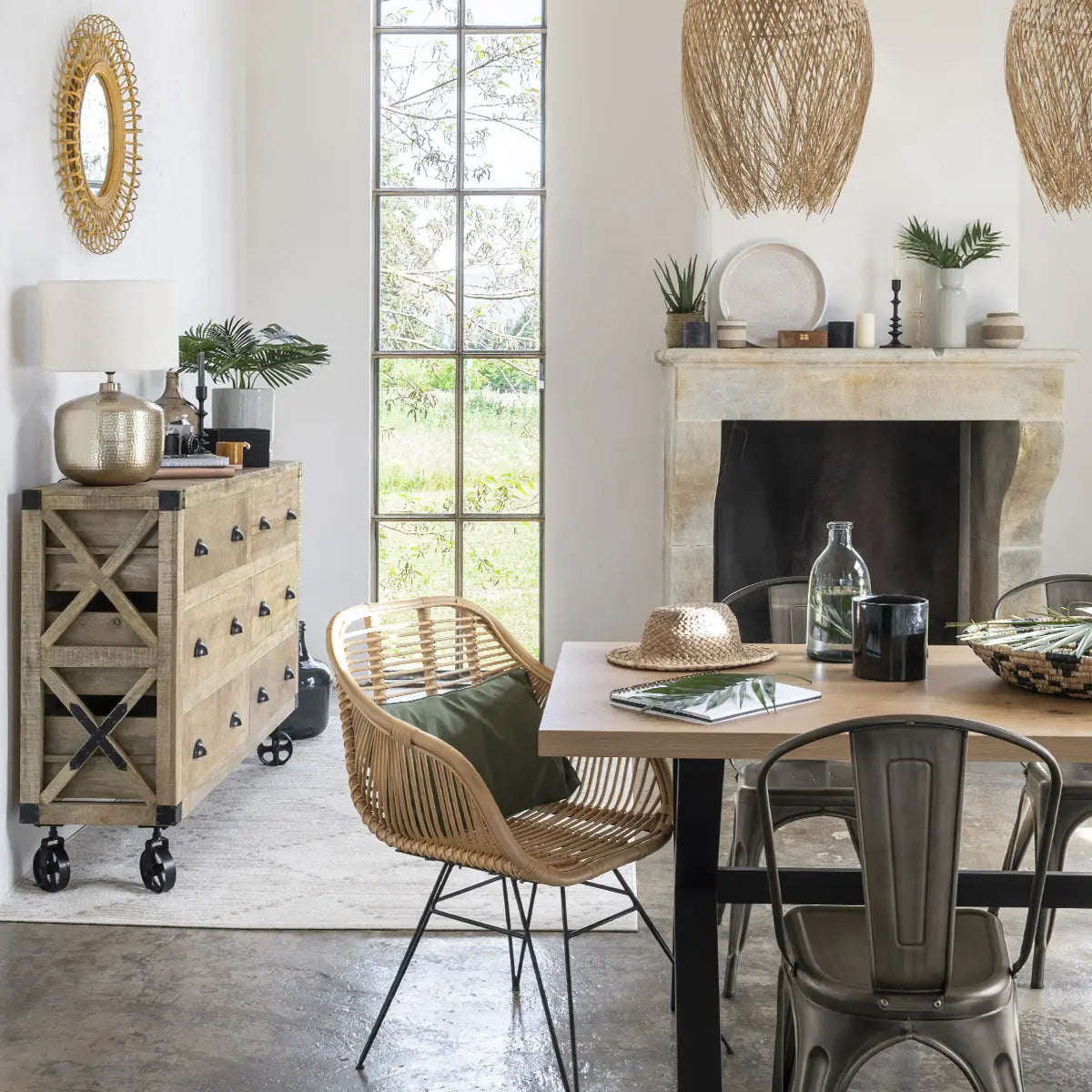 Un scaun tapițat cu fibre naturale de ratan este combinația perfectă între natură și stil. Acest accent elegant adaugă căldură și confort interiorului tău. Fabricat din ratan de înaltă calitate și cu o structură metalică robustă, acest scaun nu oferă doar estetică, ci și durabilitate de lungă durată.