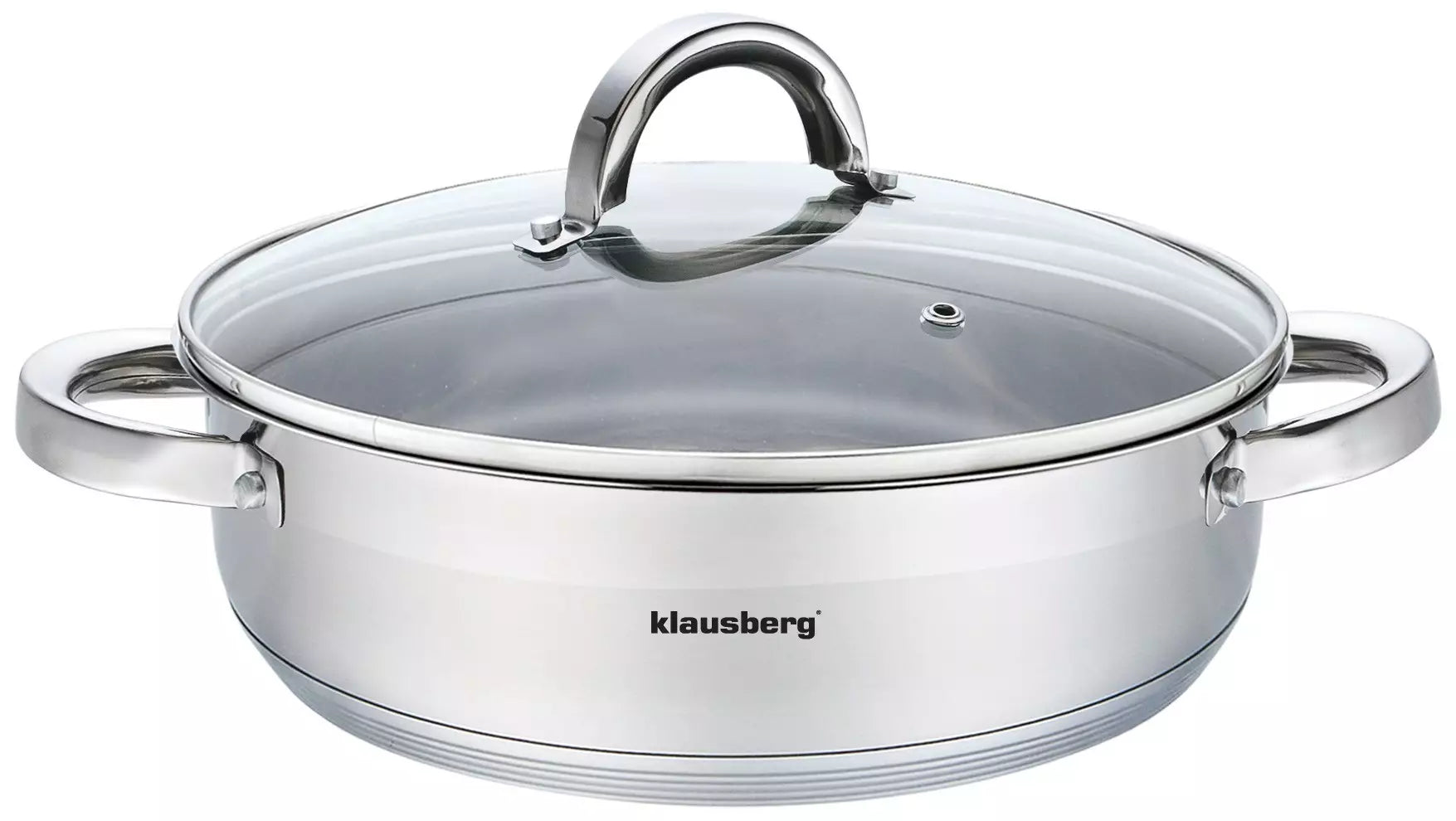 Tigaie cu mânere și capac Klausberg 7173, 26 cm, 4,6 litri, Fund gros, Inox
