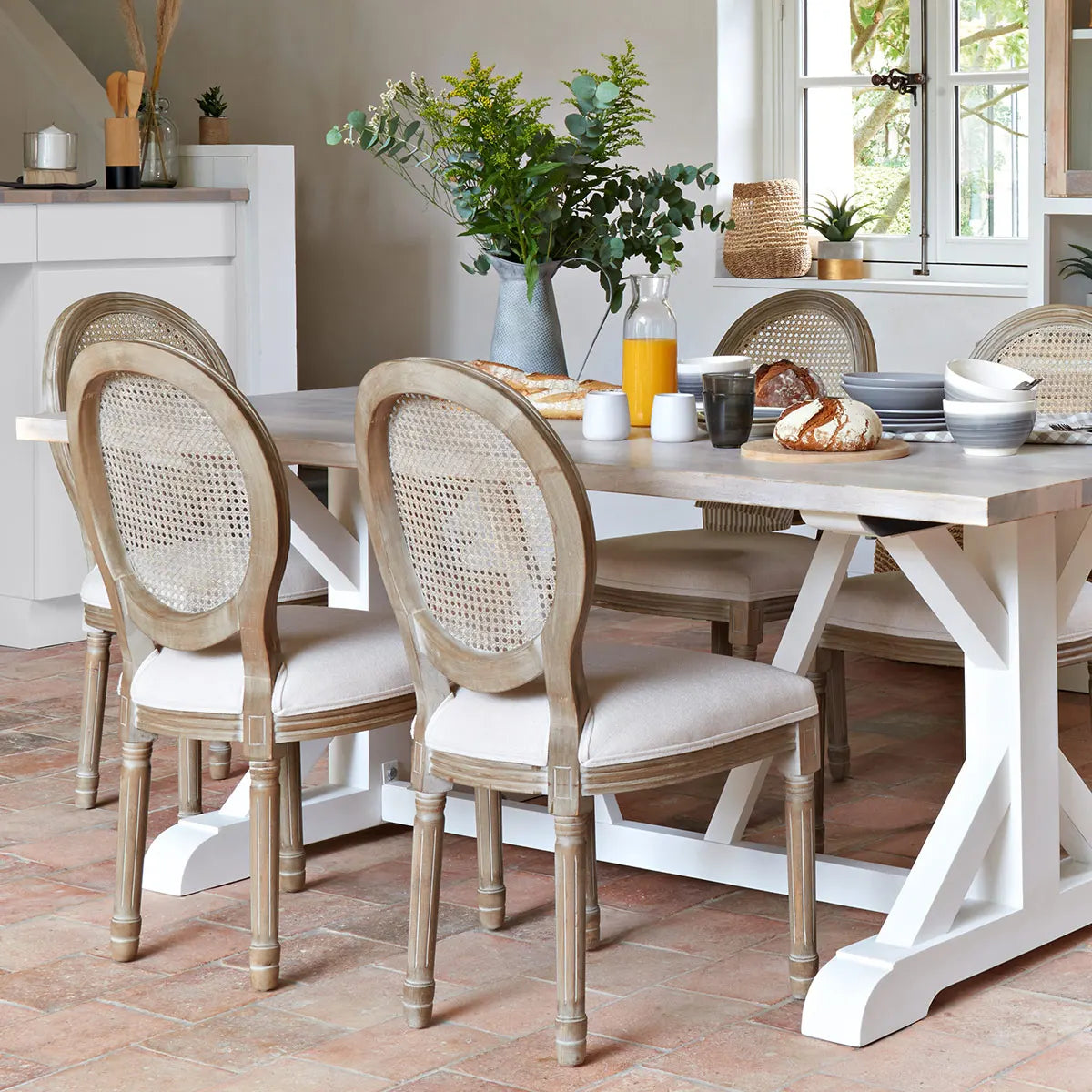 Acest scaun este conceput pentru a aduce căldură și ospitalitate. Spătarul din ratan, detaliile fine de pe picioare și finisajul lemnului decolorat creează o senzație de lejeritate și frumusețe naturală. Se integrează perfect atât în interioarele moderne, cât și în cele mai tradiționale.