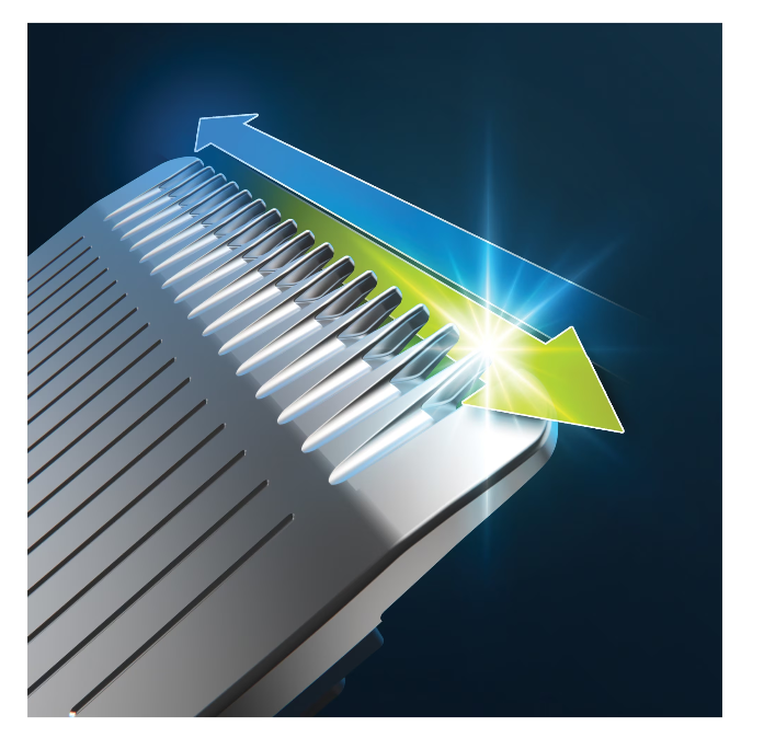 - Tundere de precizie : Tehnologie pentru o tundere uniformă dintr-o singură trecere. Pieptenele patentat oferă 11 setări de lungime de la 1 la 3 mm.