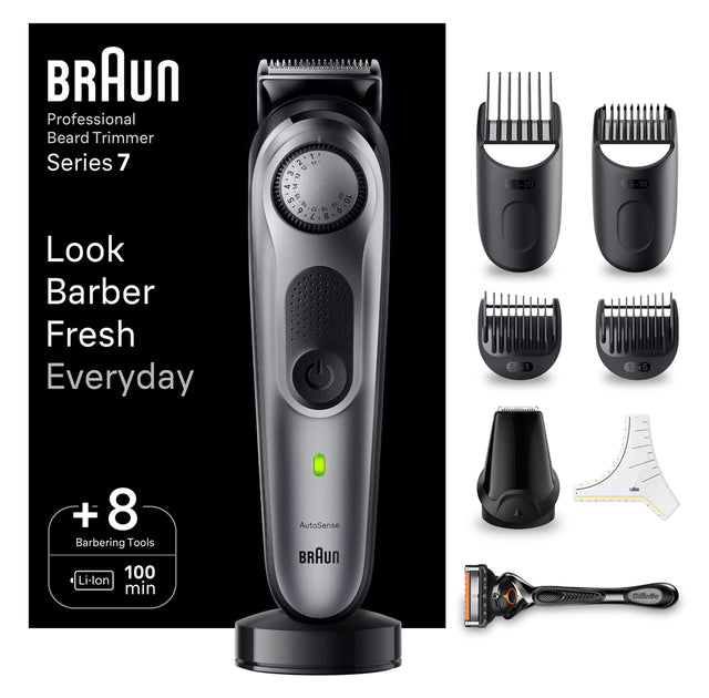 Indiferent dacă tunzi, modelezi, detaliezi sau estompezi, aparatul de tuns barba profesional Braun 9 îți oferă instrumente premium care fac ca obținerea unor linii clare, a tranzițiilor line și a tunsurilor uniforme să fie ușoară și intuitivă.