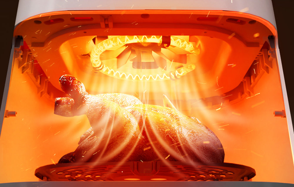 Deerma DEM-KZ130W este o friteuză cu aer cald cu o capacitate de 5,5 litri, ideală pentru gătitul porțiilor mari și chiar a unui pui întreg. Cu o putere de 1300W și un interval de temperatură de până la 200°C, aparatul asigură o gătire rapidă și eficientă. Oferă 6 programe presetate pentru diferite tipuri de alimente și posibilitatea de a personaliza setările.