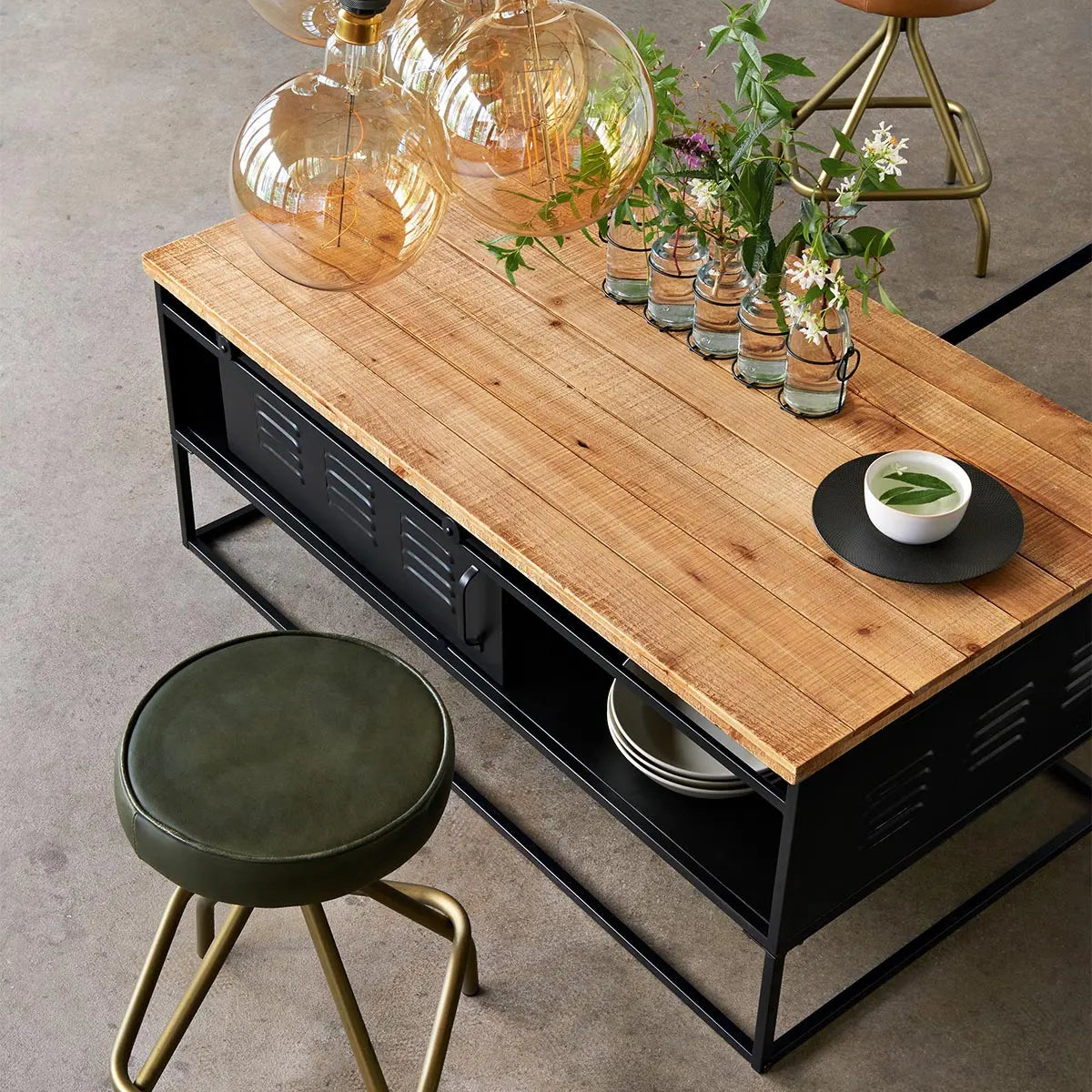Impresionanta măsuță de cafea Sierna va scoate în evidență livingul dumneavoastră elegant și modern. Combinând metalul și bradul, măsuța de cafea aduce un spirit industrial spectaculos. Structura sa metalică cu găuri. Spațiul de depozitare glisant de sub blat permite depozitarea obiectelor.