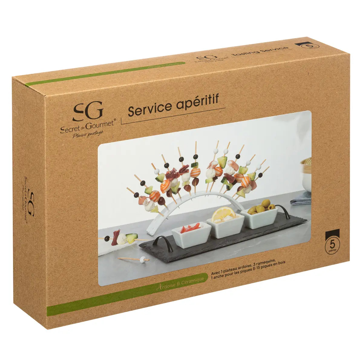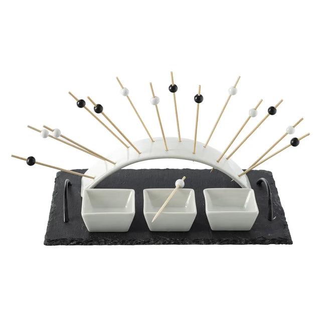 Farfurie aperitiv Atmosphera, 30x20 cm, Porțelan/ardezie/bambus