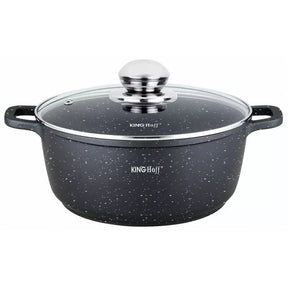 Cratiță din marmură de înaltă calitate, Ø16cm / 1,3L, cu capac de sticlă. Fabricat din aluminiu turnat cu strat antiaderent din marmură Produsul cu un strat de marmură durabil și antiaderent permite gătit sănătos fără grăsimi și curățare ușoară și mai presus de toate, protejează alimentele de ardere. Materialul folosit reține și conduce perfect căldura.