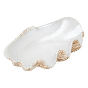 Bol elegant în formă de scoică, cu dimensiunile de 36 x 20 x 8 cm, fabricat din polirășină durabilă. Potrivit pentru decorarea unei mese, a unui raft sau a unui dulap, precum și pentru depozitarea unor accesorii mici și a unor elemente decorative.