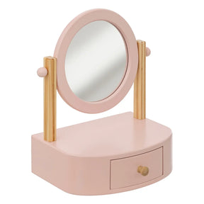 Masă de toaletă compactă și ușoară, dimensiune ideală pentru transport facil. Copilul tău se poate distra oriunde dorește. Oglindă reglabilă care poate fi ajustată la înălțimea copilului. Are 1 sertar pentru depozitarea tuturor accesoriilor mici de înfrumusețare.